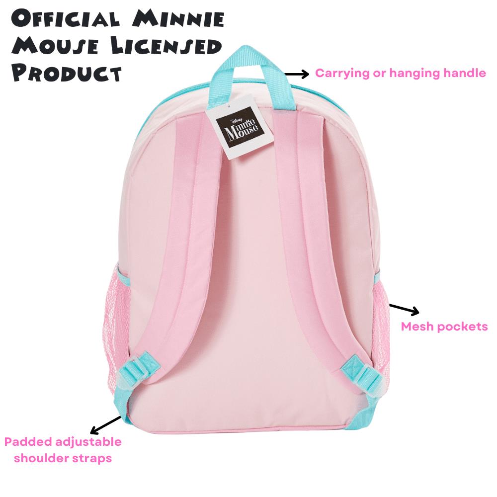 • MINNIE GIFT FOR GIRLS AGES 3+ ? This cute backpack set makes a wonderful birthday gift or first-day-of-school present for any child who loves Minnie Mouse. It is durable enough to outlast the school year with straps that can be adjusted as kids grow.